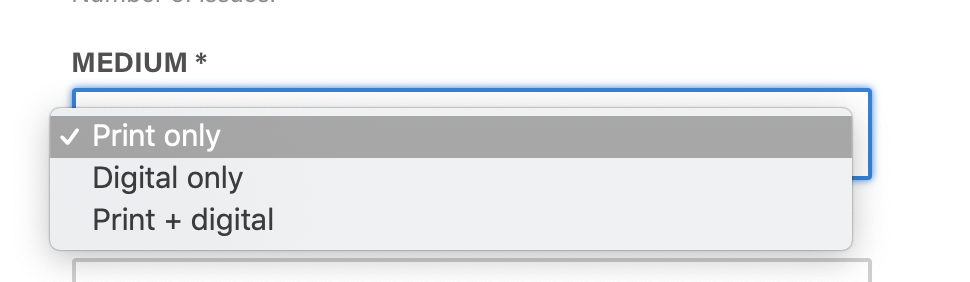 When creating a product, make sure you use the “Medium” field and select “Print and digital” or “Digital only”.